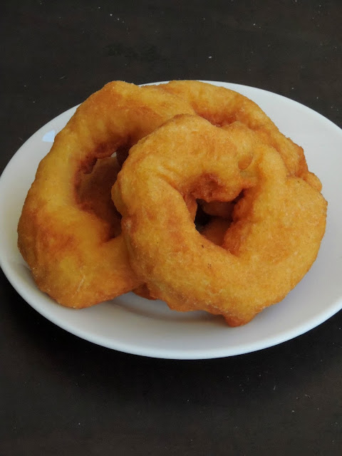 Last week, i have posted three different Moroccan dishes as i picked 'Moroccan Food' as theme for blogging marathon. While i was searching for some different and interesting recipes from this cuisine, i got hooked to this Sfenj aka Crispy Moroccan donuts.Sfenj is also considered as Algerian Donuts, however you can start your day with this donuts and end with it. Sfenj is a popular street food of Morocco and Algeria, and they are eaten with a cup of tea or coffee as these donuts are not that much sweet. These donuts are crispy on outside with chewy inside.
